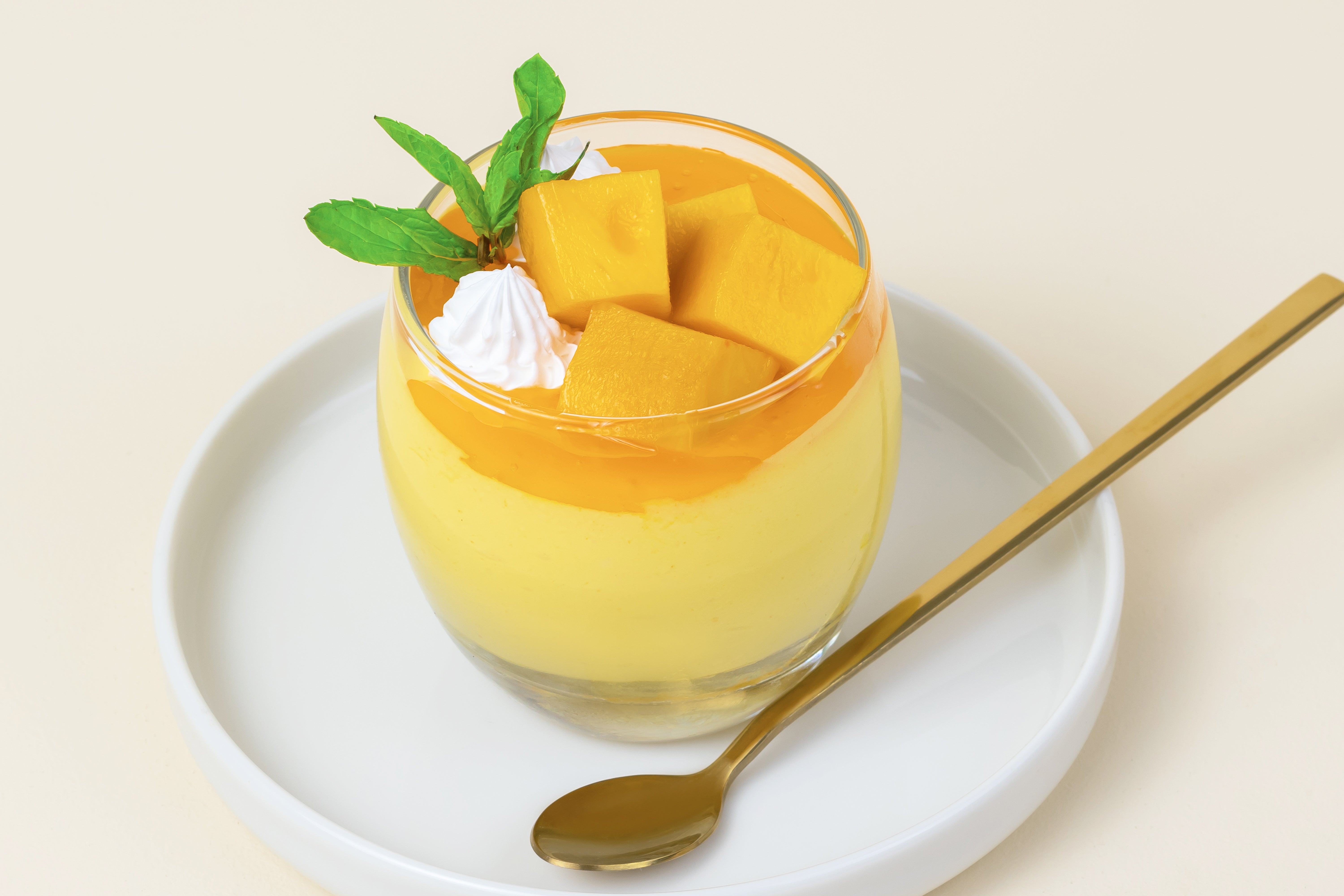 Une mousse à la mangue rafraîchissante, composée de couches onctueuses et parsemée de morceaux de mangue fraîche. Un délice tropical et léger, parfait pour égayer n'importe quel instant.