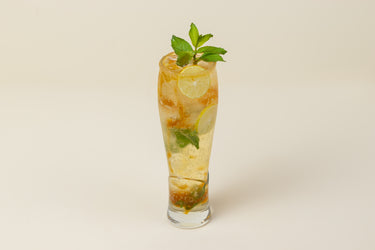 Un mojito vibrant et tropical, préparé avec de la menthe fraîche, des tranches d'agrumes et une riche saveur de fruit de la passion : la boisson rafraîchissante parfaite pour les journées chaudes.