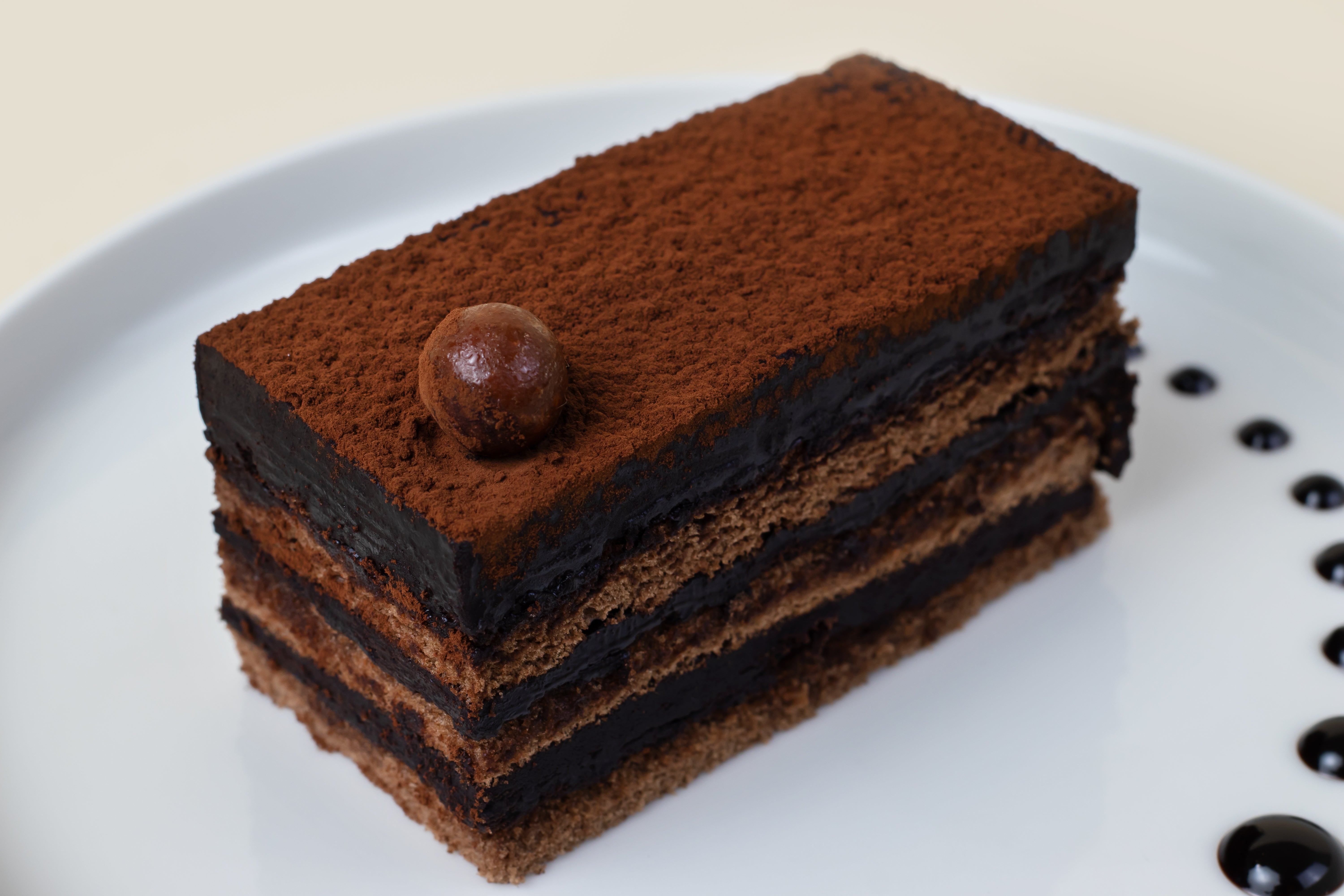 Un gâteau au chocolat autrichien classique, composé de riches couches de génoise moelleuse au cacao et d'une garniture onctueuse au chocolat, le tout recouvert d'un glaçage velouté pour une expérience élégante et gourmande à chaque bouchée.